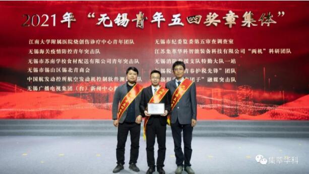 4月28日,在共青團無(wú)錫市委員會(huì )舉辦的“學(xué)黨史、強信念、跟黨走”主題團日活動(dòng)中,江蘇集萃華科智能裝備科技有限公司“兩機”科研團隊獲評2021年度“無(wú)錫青年五四獎?wù)隆睒s譽(yù)集體。