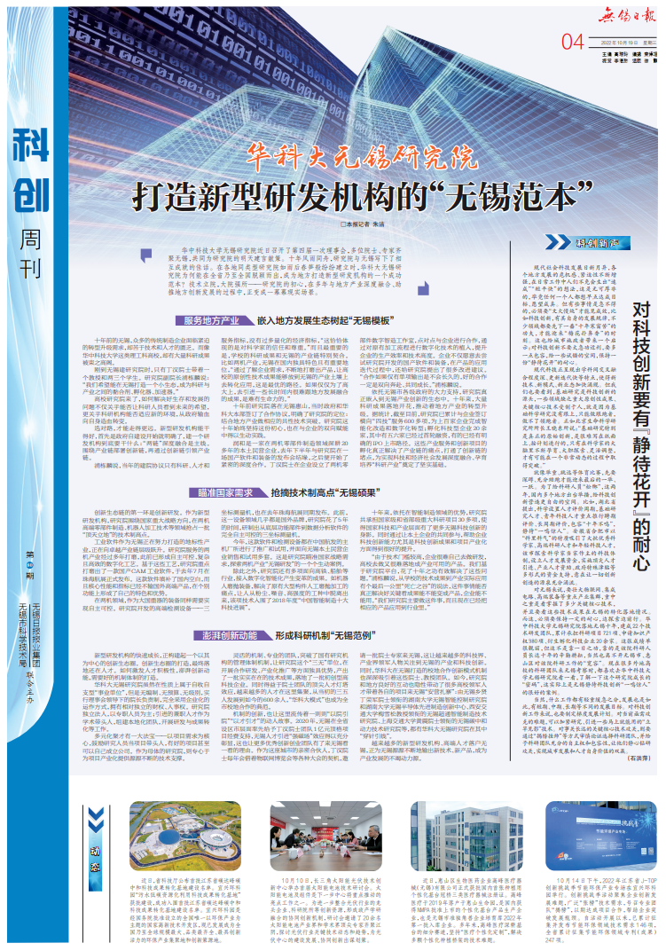 在各地同類(lèi)型研究院如雨后春筍般紛紛建立時(shí),華科大無(wú)錫研究院為何能在全省乃至全國脫穎而出,成為地方打造新型研發(fā)機構的一個(gè)成功范本?