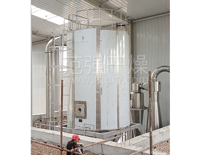 該機采用全封閉形式,所有部件均采用不銹鋼制造,配有三級凈化裝置,過(guò)濾后的空氣達十萬(wàn)級要求。筒體與頂部裝有冷壁裝置,使壁溫<80℃,干燥塔內裝有氣刷掃塔裝置。經(jīng)該機干燥后的中藥浸膏粉,不會(huì )出現焦化變質(zhì)現象,大大增加了收粉率(95%以上),而且不會(huì )產(chǎn)生混藥現象和粘壁現象。