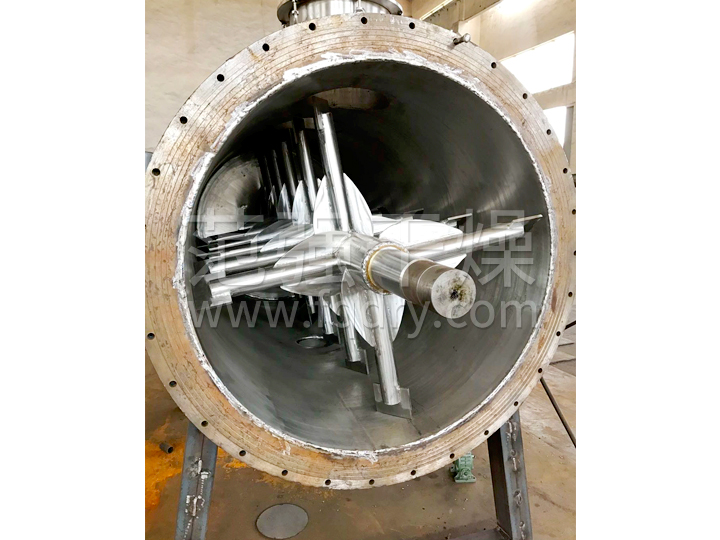 ◎真空耙式干燥機設置攪拌,使物料在筒內形成連續循環(huán)狀態(tài),進(jìn)一步提高了物料受熱的均勻度。