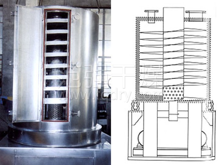●物料沿螺旋床自下而上作圓周運動(dòng)的同時(shí),自身也產(chǎn)生跳躍,從而增加了物料與熱風(fēng)的接觸,增強了干燥效果。