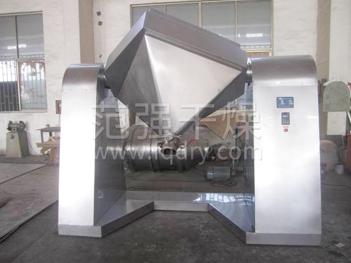 將物料裝入方錐形密閉混合桶內,料門(mén)對稱(chēng)的軸線(xiàn)與回轉軸線(xiàn)成一夾角,不同組分物料的密閉的料門(mén)中進(jìn)行三維空間運動(dòng),產(chǎn)生強烈翻轉和擴散收縮作用,達到******的混合效果。