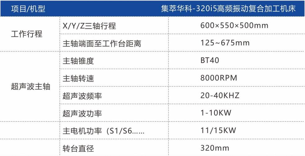 采用超聲波高頻振動(dòng)技術(shù)的復合加工專(zhuān)機,是針對急速增長(cháng)的新材料加工需求市場(chǎng)所開(kāi)發(fā)的一款面向未來(lái)的新型工業(yè)母機。通過(guò)在旋轉刀具上疊加軸向的振動(dòng)動(dòng)能,借助于旋轉刀具的疊加振動(dòng)(軸向運動(dòng)),能夠輕松完成傳統加工工藝難切削材料的機加工并達到最佳的質(zhì)量狀態(tài)。